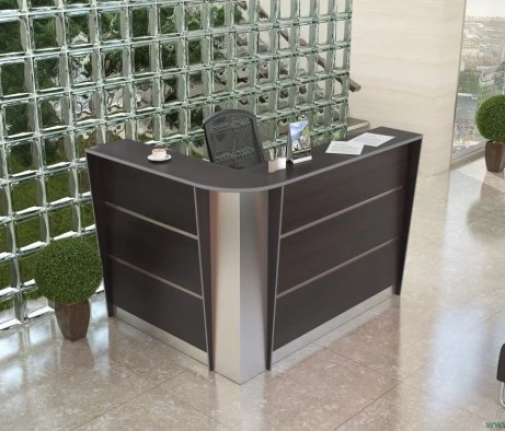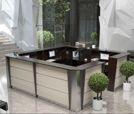 Помещение заказчика выполнено в современном стиле, который характеризуется минимализмом и использованием качественных материалов. Большие окна обеспечивают естественное освещение, а пол из белого керамогранита создает ощущение чистоты и простора. В зоне ресепшн использованы стеновые панели, гармонирующие с мебелью серии Rapid, создавая целостный и приятный визуальный образ. Темный стильный потолок идеально сочетается с черными креслами для посетителей и металлическими элементами, добавляя глубины и контраста.