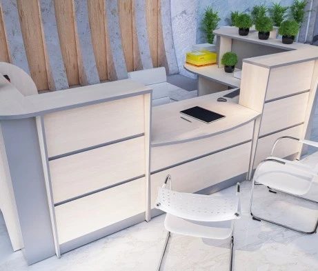 Для нашего заказчика необходимо было оборудовать помещение офисной мебелью для нескольких зон: приемной, переговорной, гардероба, а также обеспечить комфортные посадочные места для посетителей и сотрудников. Основная цель — создать функциональное пространство, поддерживающее современный стиль интерьера.